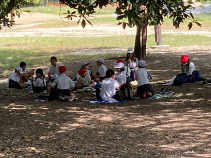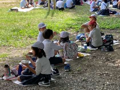 午前中一緒に行動した仲間でのお弁当の時間は、みんな楽しそうです。