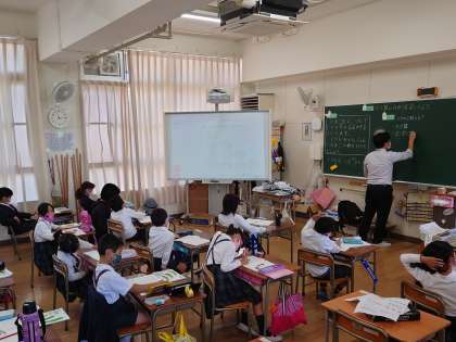 算数の授業です。かけ算のひみつを見つけます。一皿2個の目玉焼きのお皿の数と卵の数を調べます。増え方のひみつを見つけられるかな。