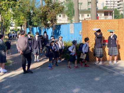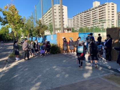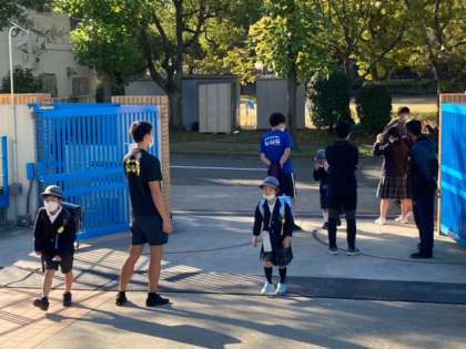 6年生の修学旅行を見送り、児童生徒の登校時間になりました。