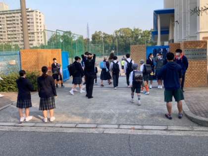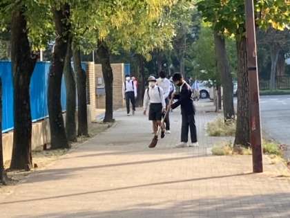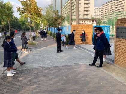 おだやかな天気の中、元気にあいさつの声が聞こえます。