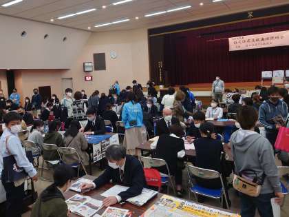たくさんの人が説明を聞きに来られており、本校中学生の姿も。