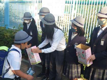 今朝から、生徒会と児童会の皆さんが「赤い羽根共同募金」を呼びかけてくれています。