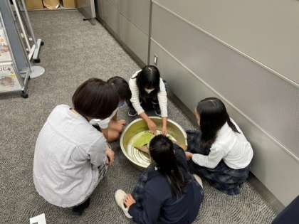 今日は3年生が「くらしの今昔館」に社会見学に来ています。