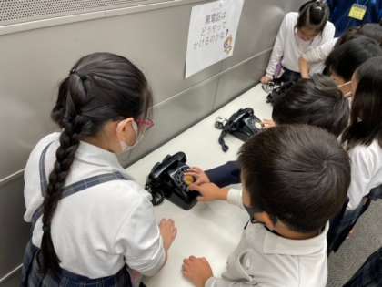 昔の道具を見たり触ったりして、どのように使っていたかを考えています。