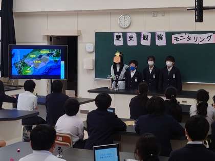 「歴史観察 モニタリング」と題して、歴史学習の中で自分たちで調べたことを、プレゼンや劇で楽しく発表しました。