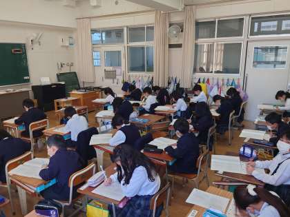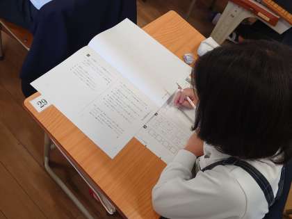 今日は、国語と社会です。たくさんの問題に、みんな集中して取り組んでいます。