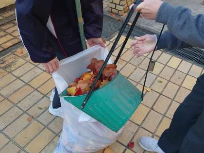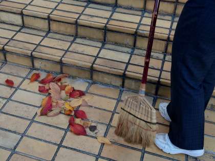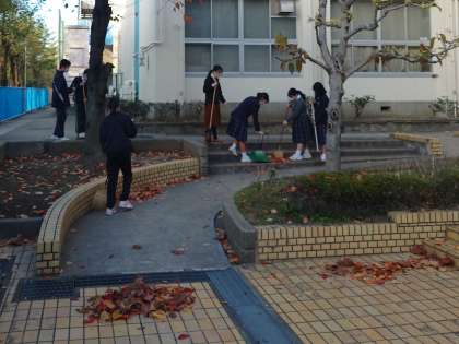今朝は、中学校の美化委員の皆さんが、玄関前の落ち葉を掃除してくれました。