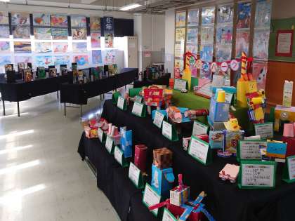 小学校は、図画作品と立体作品を展示しています。どれも力作ばかりです!