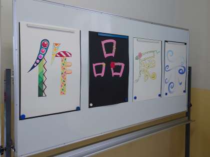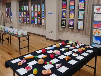 中学校は、各学年や教科、部活動などから、たくさん展示されています。