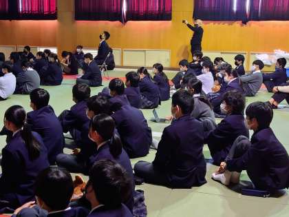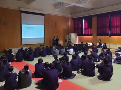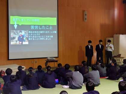 先月8年生が取り組んだ「職場体験」の報告会を開きました。