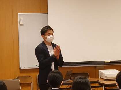 今日は、香川県からプロバスケットボールコーチの安倍瑞基さんにお越しいただき、「夢授業」をしていただきました。