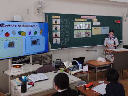 「食べ物で日本の四季を感じよう」として、野菜の旬について学びました。