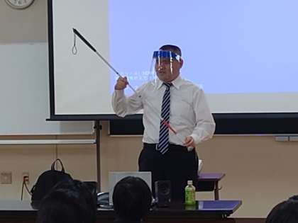 ゲストティーチャーとして、早川福祉会館点字図書館の濱崎雄三さんをお招きし、目の不自由な方の生活についてお話を聞きました。