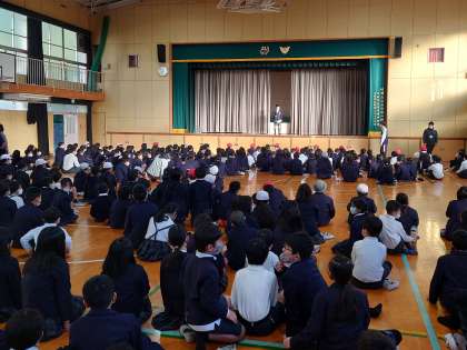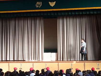 今日は「もの当てクイズ」です。狭い隙間を通過するものを当てます。一瞬を見逃さないように、みんな集中して見ています。みんなでワイワイ盛り上がりました!