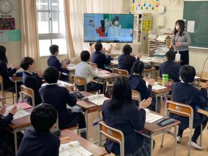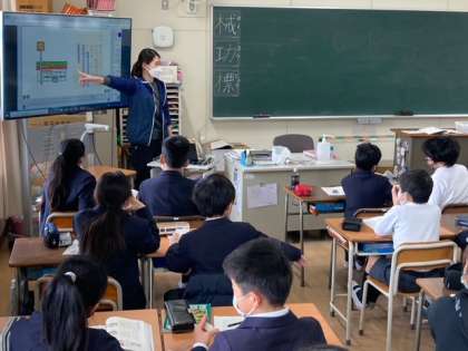 5年生の英語では、専科の先生と中学校の英語の先生による授業を行なっています。
