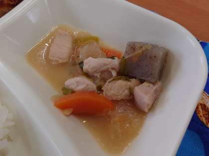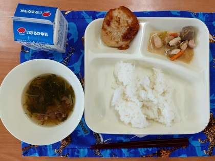 献立は、鶏肉の土手焼き風、はりはり汁、レンコンのフライ大阪ソース味です。学校給食献立コンクール最優秀賞献立になります。