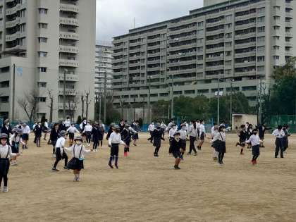 今日は2・4・6年生の活動日です。少し雪がちらつくような寒さでしたが、5分間なわとびを跳んで温まりました!
