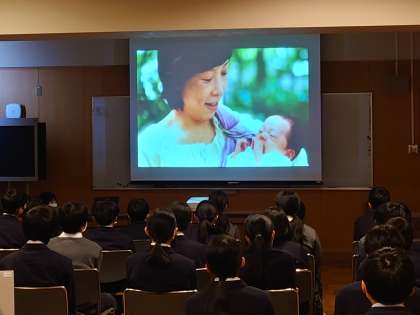 赤ちゃんが生まれてくるときのお話を聞き、動画を観ました。部屋中が、静かな感動に包まれています。