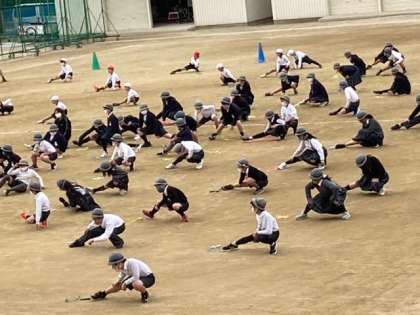 今日も寒いですが準備体操の後、元気にがんばりました。