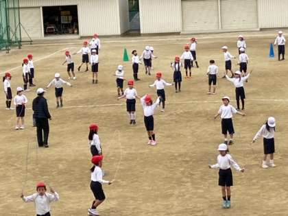 20分の休み時間に運動場に出てなわとびにチャレンジします。