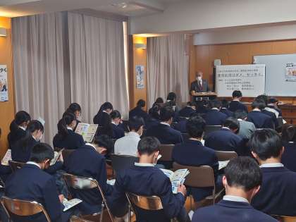 テキストを用いながら、薬物の依存性や耐性について学びます。保護司の方から、薬物依存になり社会性を失った人と関わったエピソードも伺いました。生徒たちは、自分と遠いところの話ではなく、身近にある危険であることを感じていました。