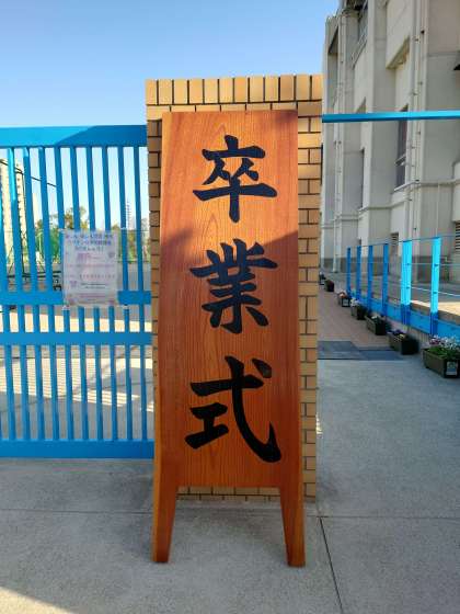 中学校第39回卒業証書授与式の朝を迎えました。卒業生の門出を祝うように、澄みきった空が広がっています。