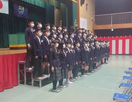卒業生からの呼びかけでは、6年間の思い出とともに、周りの人、家族への感謝が伝えられました。在校生代表の5年生からも、卒業生へのお祝いのことばと歌が届けられました。