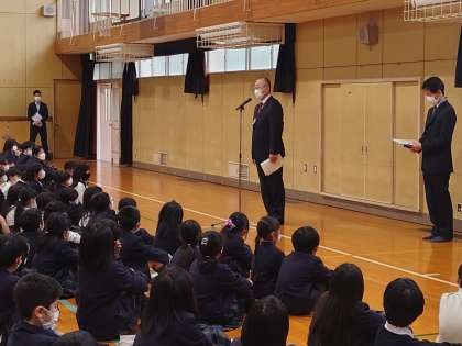続いて、校長先生から「身近な物事に興味をもつことの大切さ」のお話、生徒指導の先生から春休みのくらしについてのお話がありました。