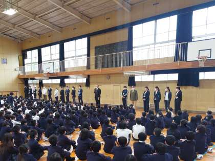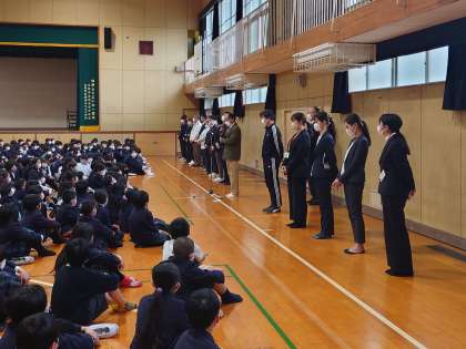 修了式のあと、この年度末で本校を去られる教職員の方々とのお別れの式を行いました。。