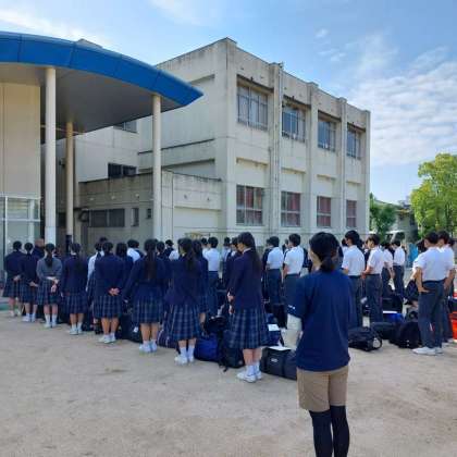 9年生 北陸地方 福井・石川県方面 修学旅行 笑顔で出発です。行ってきます!