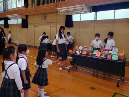 1年生は「6年生となかよくなろう〜みなみフェスタ2023〜」と題して、6年生との交流の場を参観いただきました。コインおとしやモグラたたきなど、6年生の準備してくれたいろいろなお店で遊びながら触れ合います。あちこちで笑顔がこぼれていました。