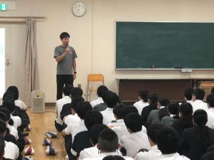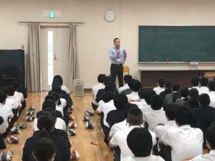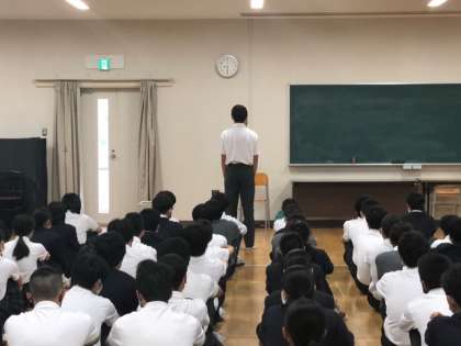本日、交流スペースにて中学校集会を行いました。バドミントン部の表彰の後、副校長先生からは、「笑顔と優しさと思いのあふれる体育大会でした。」とお褒めの言葉をいただきました。また、係の先生から選択授業についての連絡がありました。