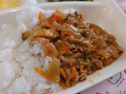 今日はカレーライスではなく、お出汁のきいたカレー丼です。どんどんスプーンが進みます!