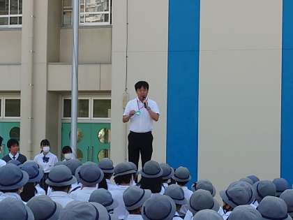 校長先生からは、1学期の振り返りについてと、ひまわりのようにまっすぐ目標に向かって伸びていってほしいとのお話がありました。