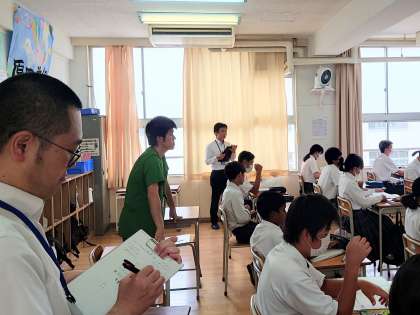 今日は、中学校の授業の視察に、教育センターから指導主事の先生方が来られています。