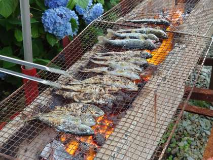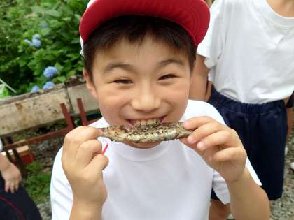 とった魚は、その場で塩焼きにしていただきます。まさに「いただきます」を感じながら、おいしく食べました。