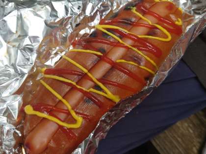一緒に焼いたじゃがいももホクホクです。バナナとオレンジジュースもいただきます!