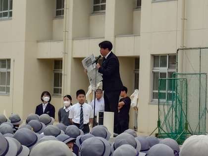 たくさんの表彰のあと、校長先生からのお話がありました。昨日の阪神タイガースの日本一に触れ、情熱をもち続けることの大切さをお話いただきました。