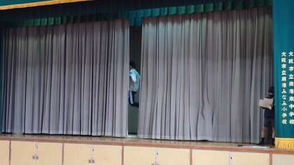今朝は「もの当てクイズ」です。カーテンのうしろを通り過ぎるものを、少しの隙間から見える一瞬の様子で当てます。
