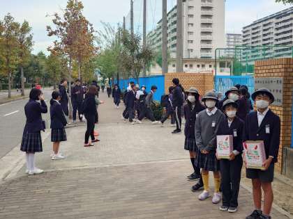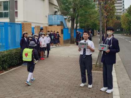 昨日から、児童会・生徒会の皆さんが、門のところで「赤い羽根共同募金」の呼びかけをしてくれています。