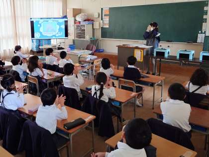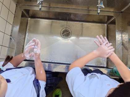 保健室の平野先生に「手洗い指導」の授業をしていただきました。