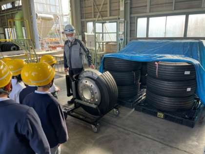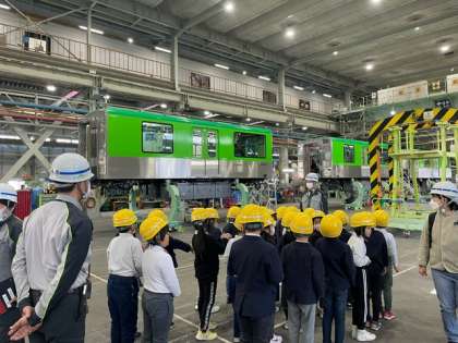 安全のためにヘルメットを被ってから、いざ検車場内へ。