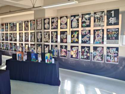 児童生徒の力作が並んでいます。懇談会でご来校された際、ぜひご覧ください。