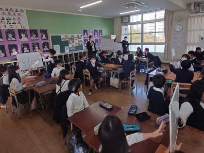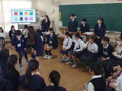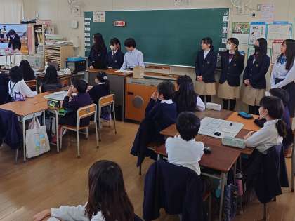 今日は、4年生と5年生を対象に、本校のお隣、水都国際中高の生徒さんたちが出前授業に来てくれました。「英語でアクティビティ」と題して、英語を使ったゲームを紹介し、一緒に楽しく活動してくれました。本校児童も、英語をたくさん発音したくさん楽しみました。