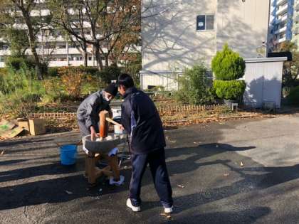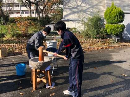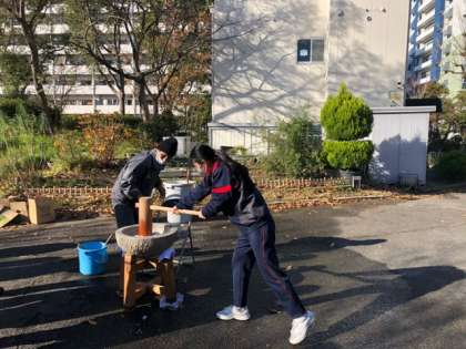 本日、南港緑の町で餅つきが行われました。本校からも剣道部がお手伝いとして参加してくれました。とってもいい経験になりました。出来栄えもパーフェクト!つきたてのお餅、最高でした。