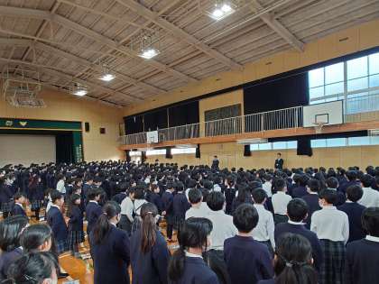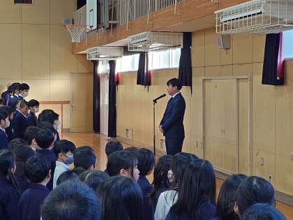 始業式では、校長先生からまず元日に起きた能登半島地震のお話がありました。被災されている方々に思いを寄せると共に、備えが大切であることを確認しました。また、駅伝やサッカーなど年始に行われたたくさんのスポーツに触れ、2024年もチャレンジする気持ちを大切にしようというお話がありました。