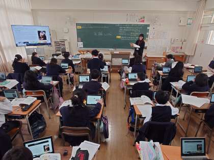 堺の刃物づくりについて、それぞれがタブレットPCを使って調べ学習を進めています。