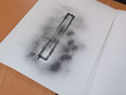 磁石と鉄粉を使って、磁界を可視化します。きれいに現れた磁界の模様に、見つける楽しさを感じていたように思います。