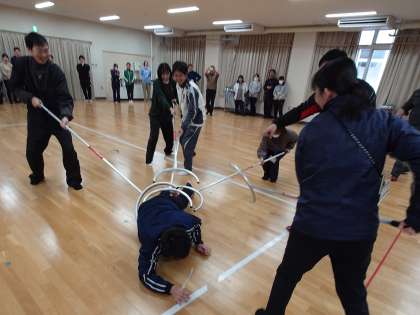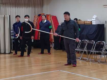 警察への通報までの一連の流れに加え、刺股の使用方法も学びました。
