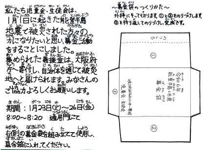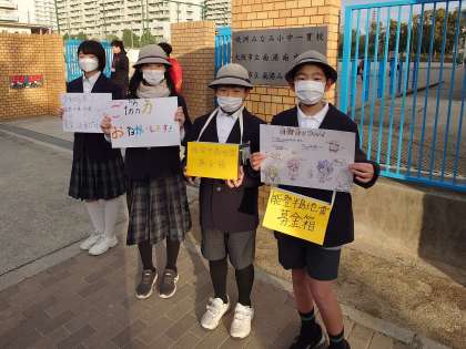 今年1月1日に起きた能登半島地震を受け、本校児童会と生徒会の皆さんが、募金活動を始めてくれました。